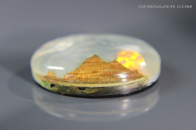 Aurora synthetic Opal, Mother of Pearl triplet cabochon, Australia. 30.76 carats. (Video)
