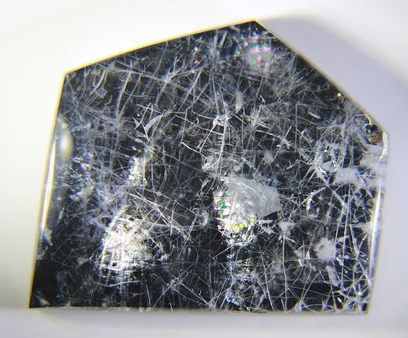 An unusual and attractive pairing of transparent and opalescent Hyalite or 'Satin-flash' Opal backed with black onyx.