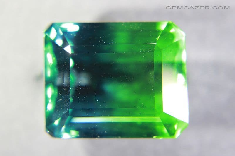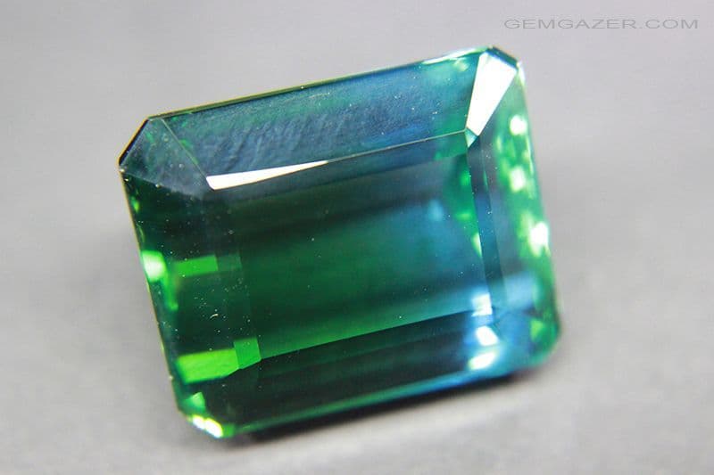 The eye clean gem is divided in colour in the centre, one half a vibrant grass green colour with the other half a deep aquamarine blue.