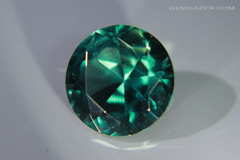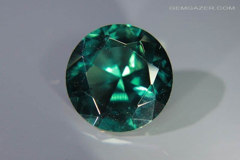 Synthetic Spinel, Verneuil method, teal-blue faceted, 14.39 carats.
